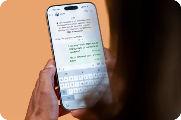 Acceso directo a nuestras matronas expertas vía WhatsApp para seguir vuestro proceso y resolver cualquier duda real antes y después de la compra.