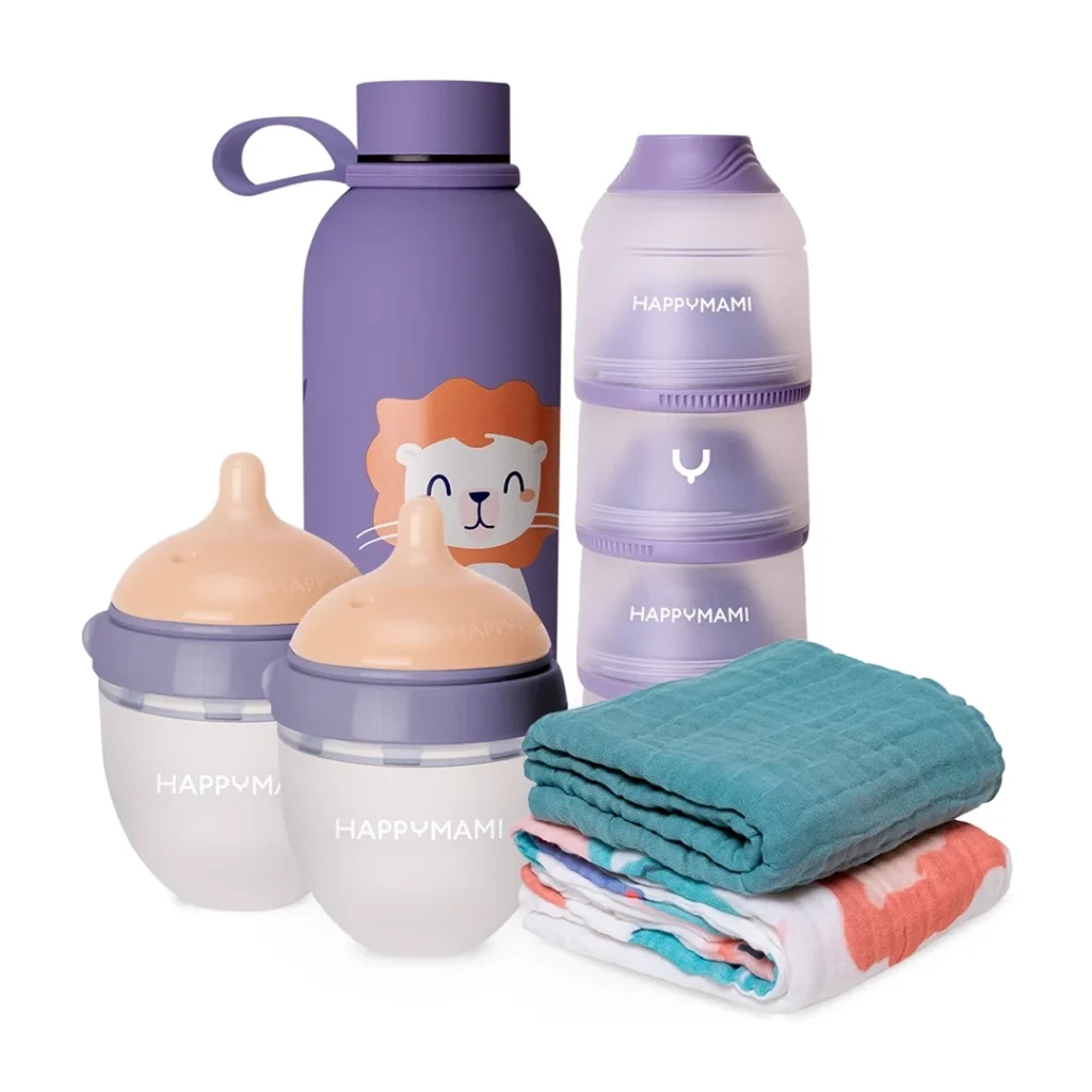 Máxima comodidad para las tomas de tu bebé. El pack completo incluye 2 biberones a medida, dosificador y termo. Ten siempre uno listo y simplifica tu día a día.